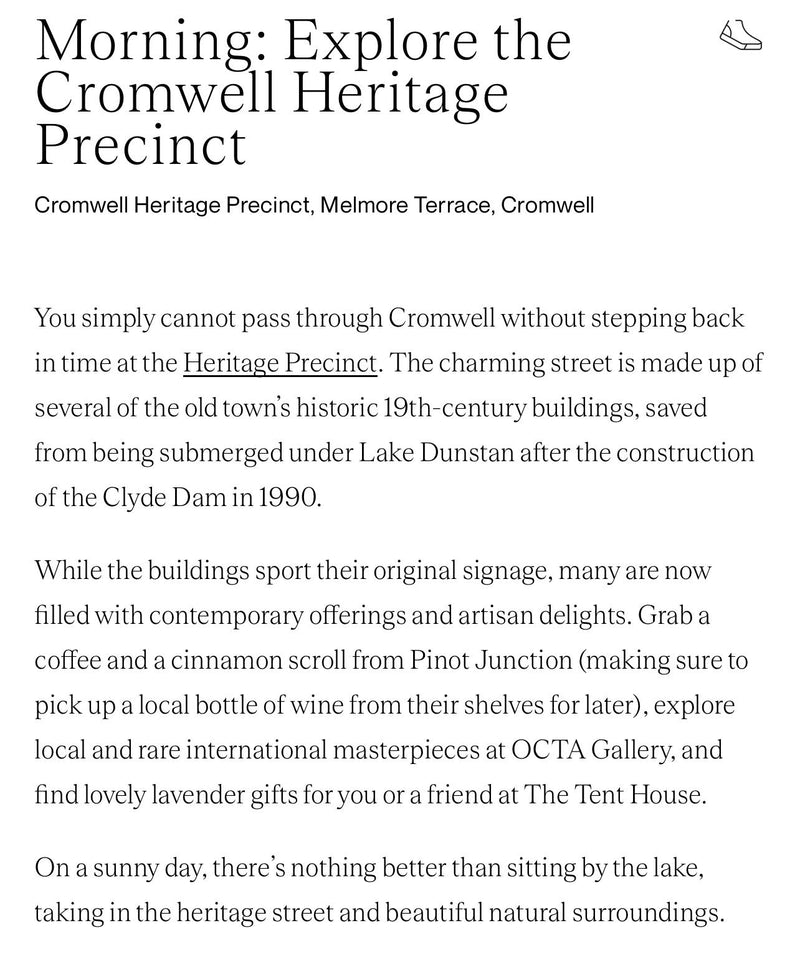 "Set in the heart of the Cromwell Heritage Precinct, Pinot Junction is a café and wine store with a sense of community that reaches well beyond the region’s permanent residents. Since opening in the historic Murrells Cottage in 2022, it’s become a beloved destination for breakfast, coffee and lunch and the promise of its famous cinnamon scrolls.