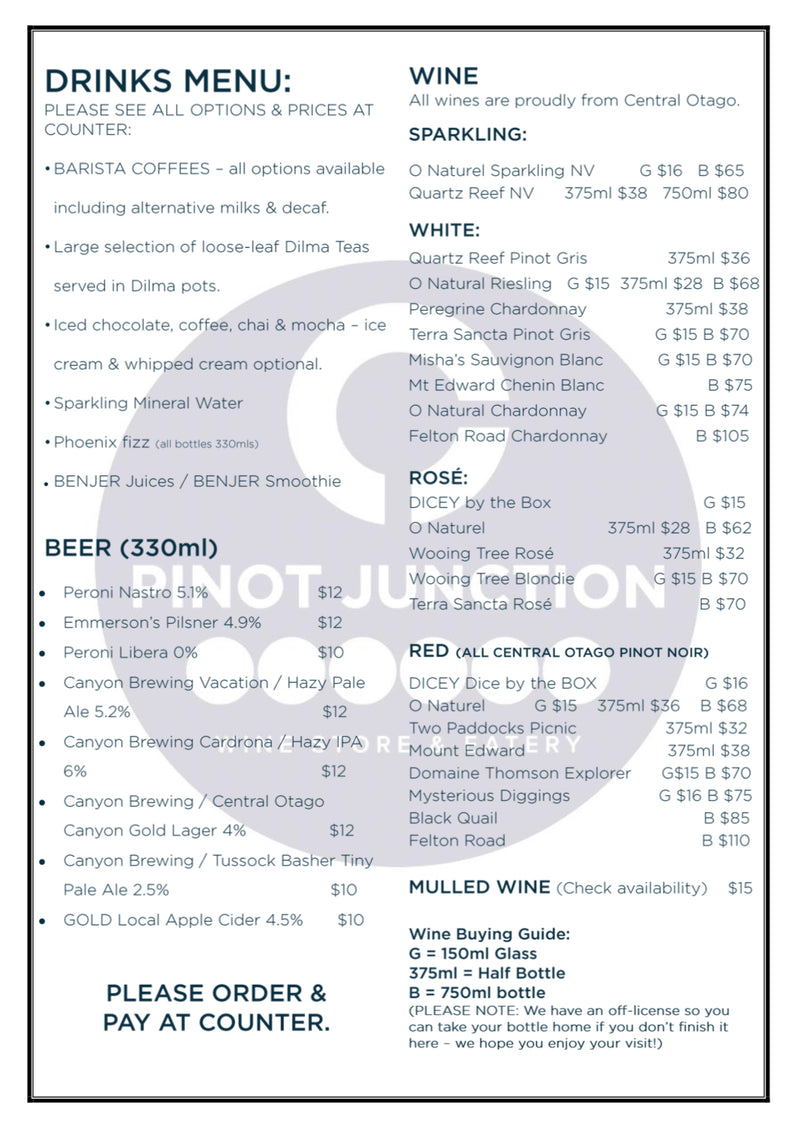 Dine in | Lunch | NZ$80-90 Delicious food (we had a big breakfast & kumara rosti stack paired with Emerson pilsner & local chardonnay) fantastic wine selection, very fast and efficient service especially considering we came at such a busy time. The scenery is gorgeous by the river especially on a nice sunny day. Thankyou for a lovely experience. Cromwell has been such a delight.