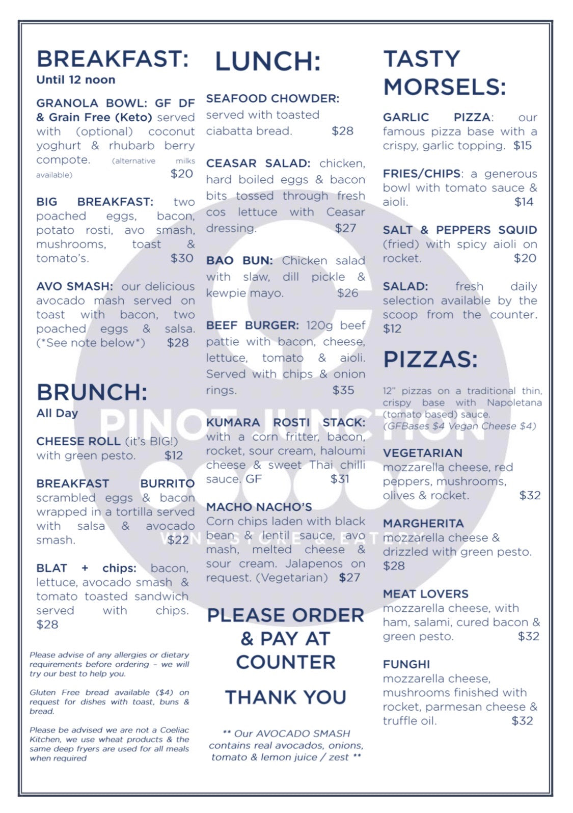 Brunch, lunch, coffees, wine ... we've got you covered!